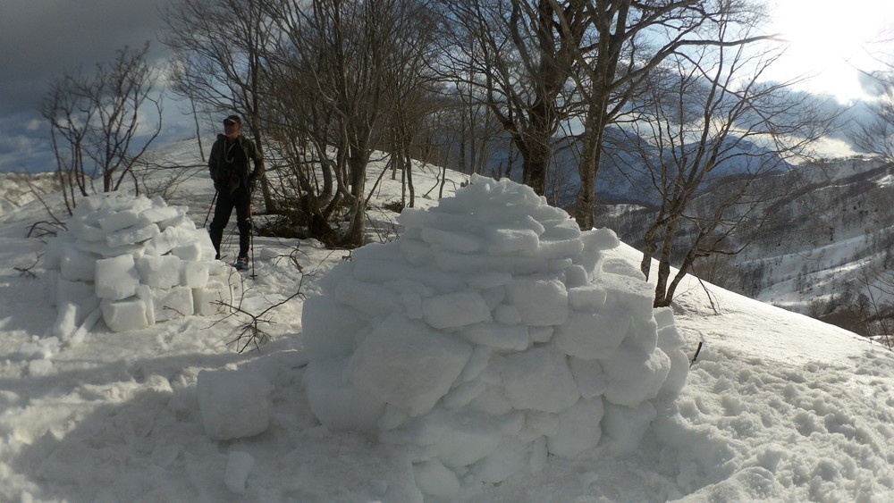 2022/4/2-3 神鳩避難小屋の前でイグルー作って泊まってきた