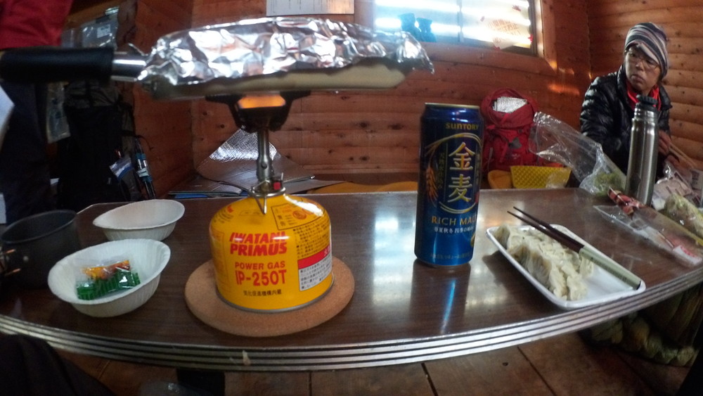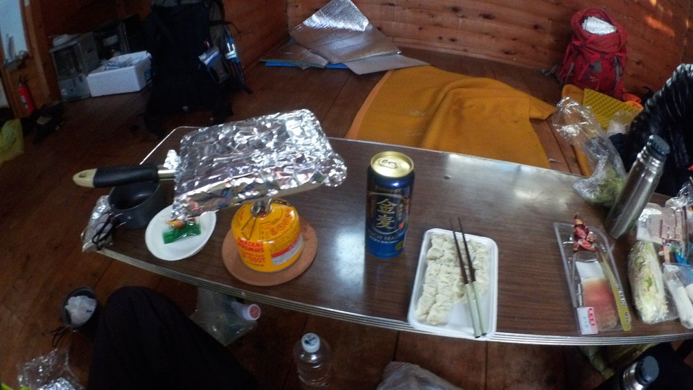 小屋の中にザックを置いて腰かけて休憩。