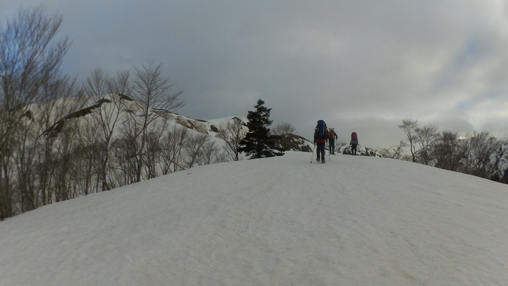 まずヨッシーさんがP1748まで登って、降りて様子を聞いた隊長が次に同じように登って、降りて・・・・。