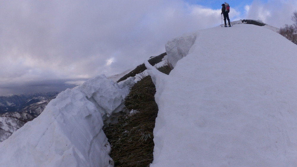 下は1mくらい降りればトラバース区間を雪もなく普通に歩ける。