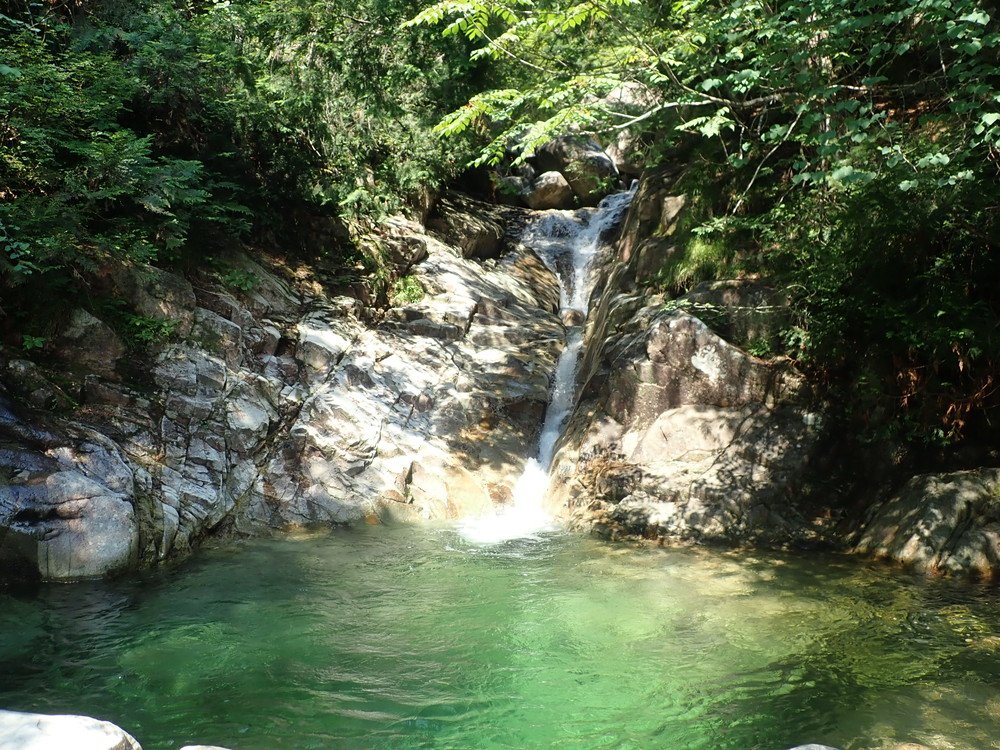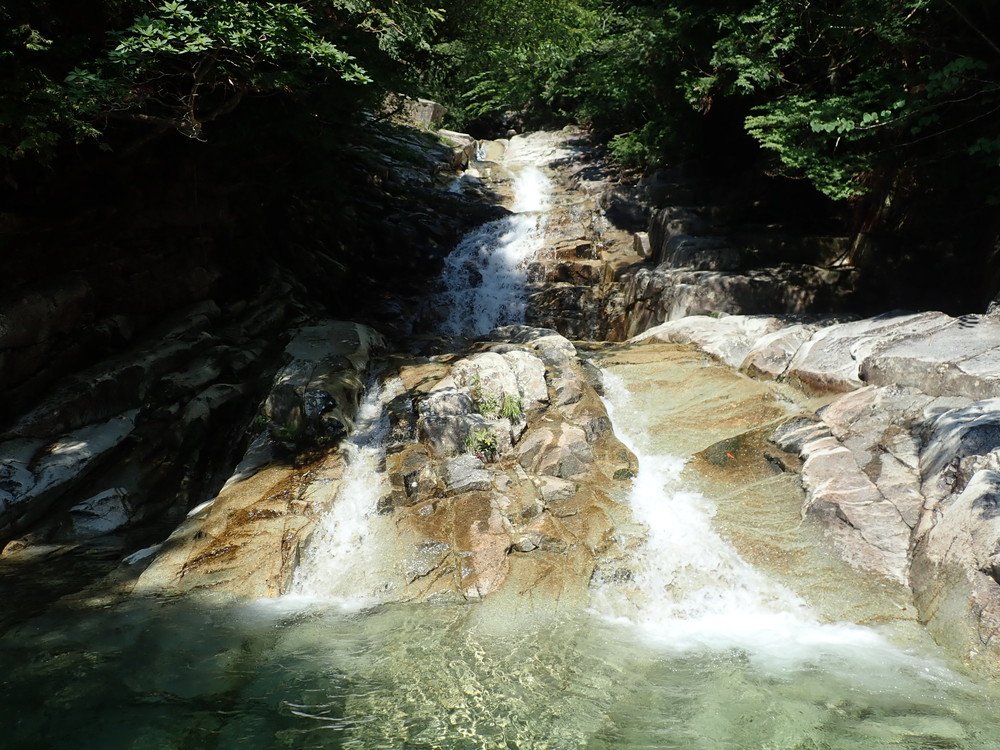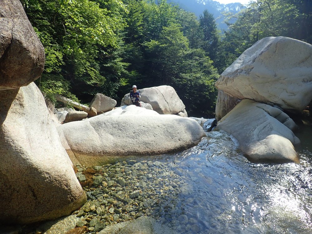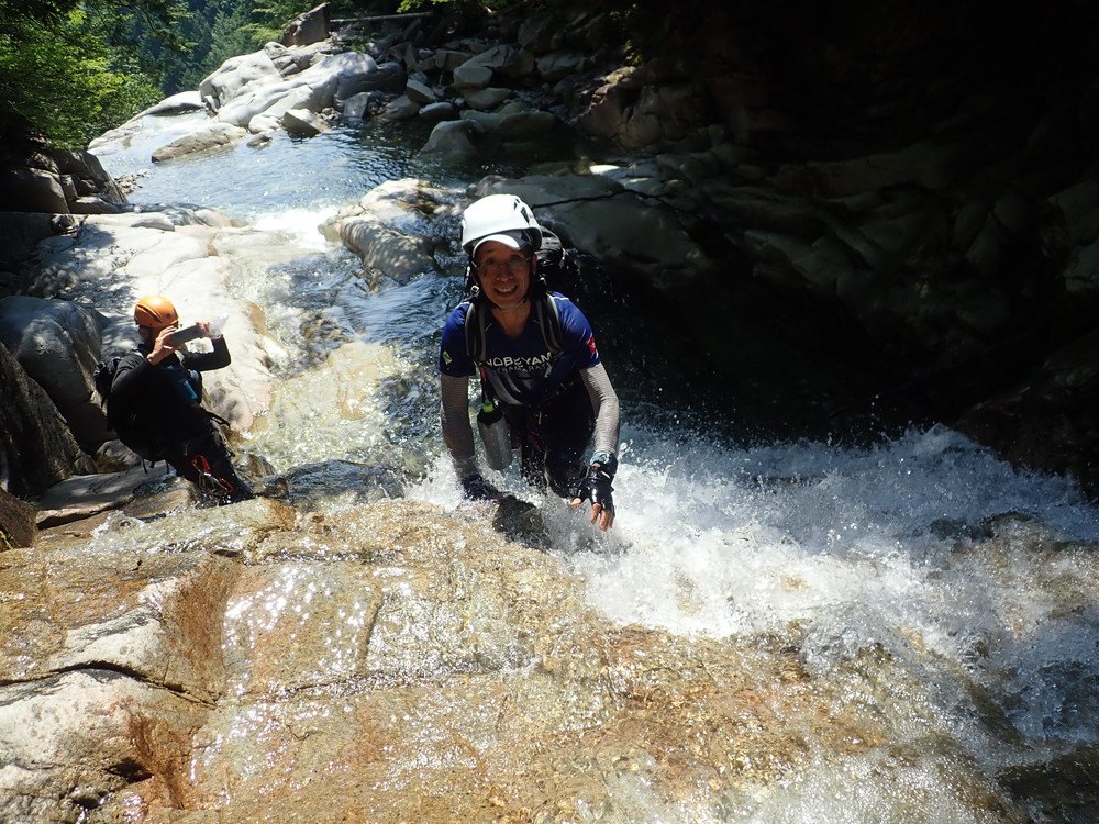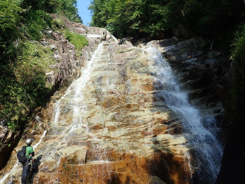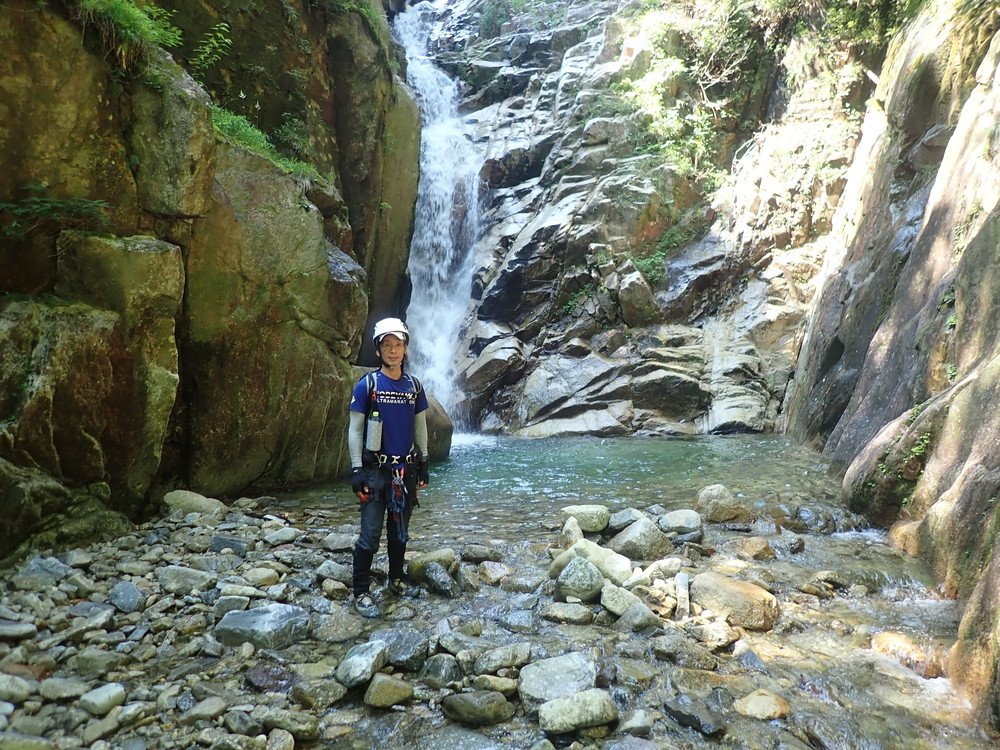 。入渓して3時間くらいのところで4-5m級の滝を二人連なって登っているのを下で動画撮影してました