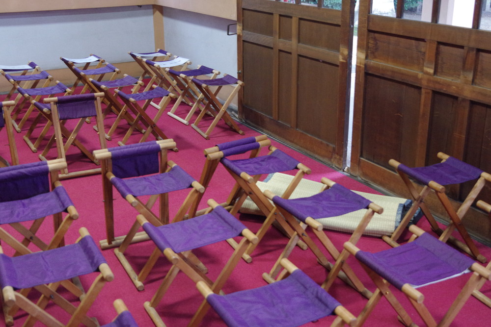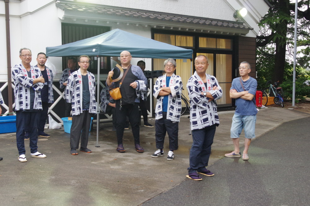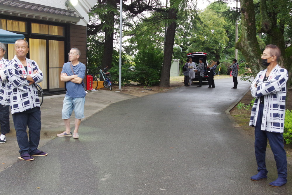社務所前の受付は保存会が机・椅子を荒古の若屋から借りてきて設営済み