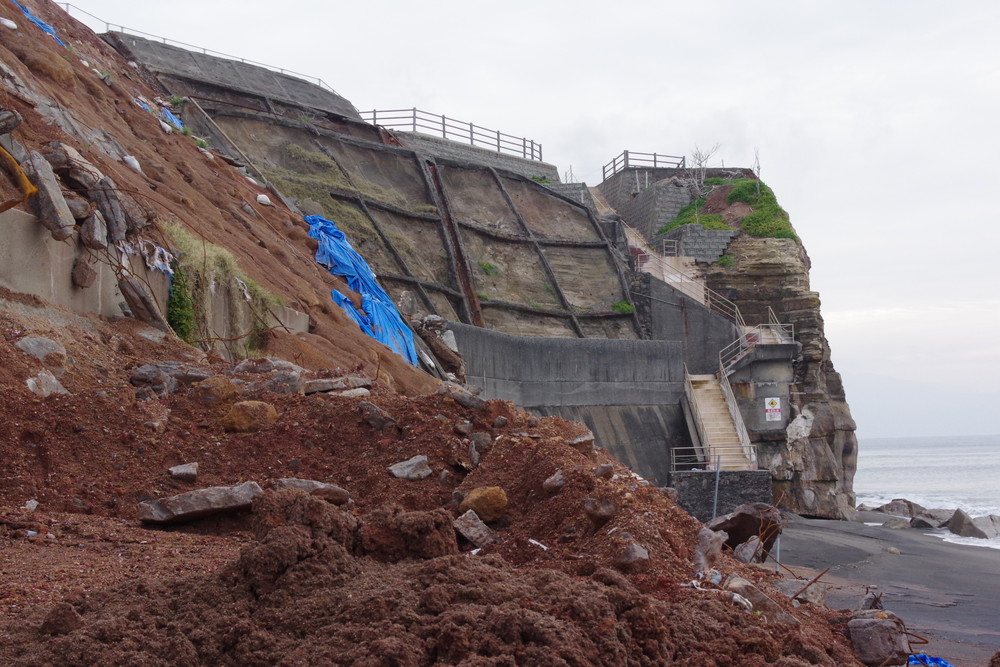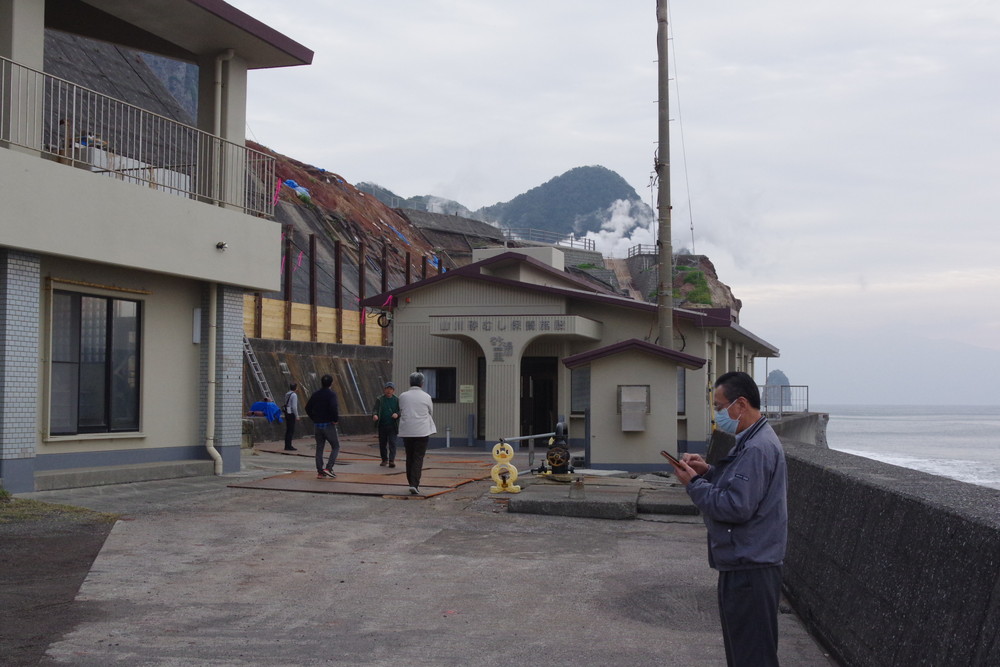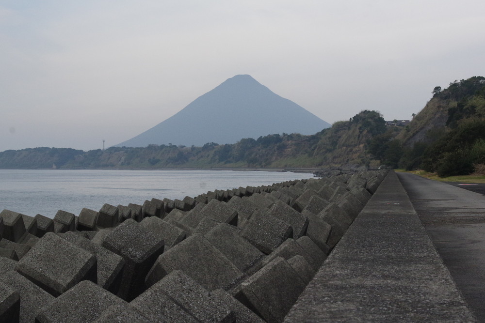 そして、8:30前には白水館を出発。山川砂むし風呂へ向かう。土砂崩れのため休業中であることは承知だが、昨日全貌を見られなかった開聞岳を見たくて寄った。