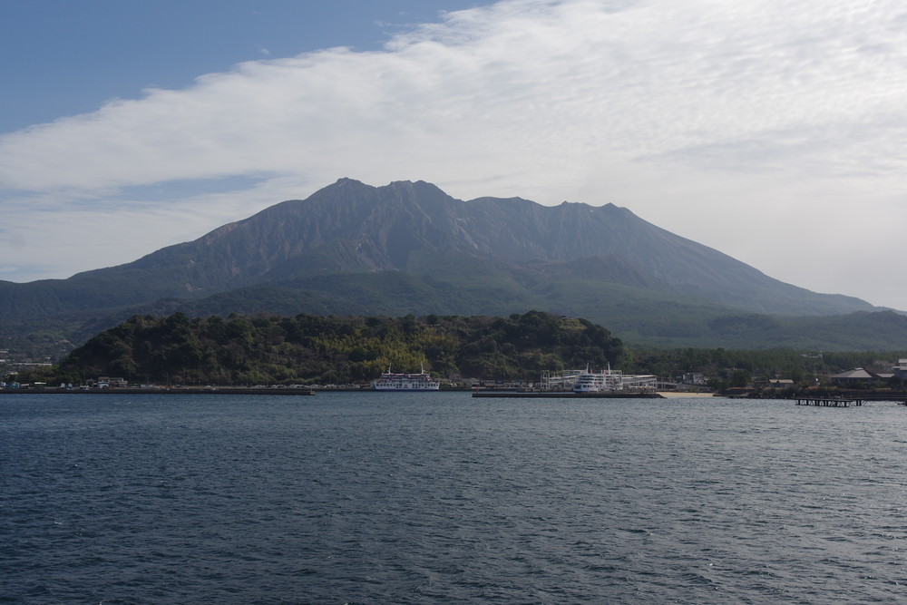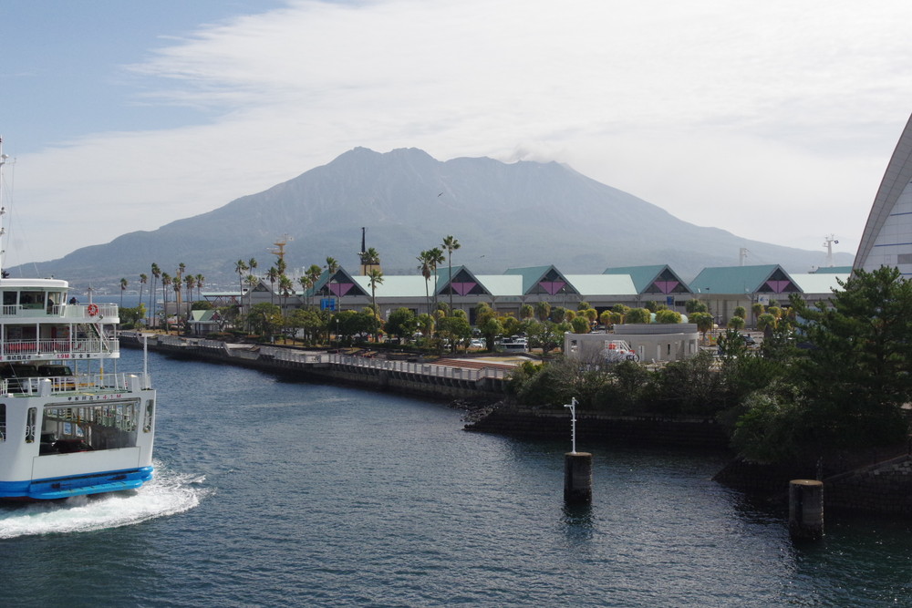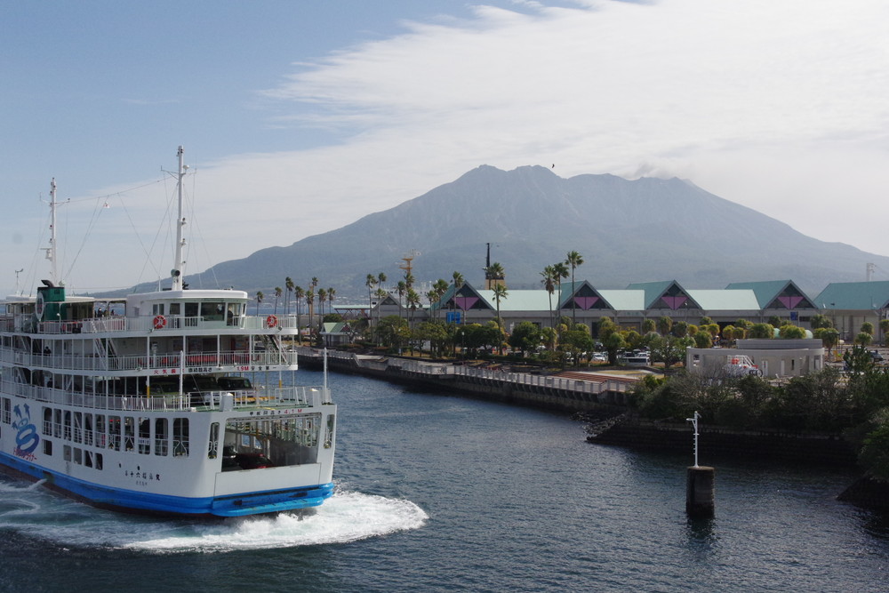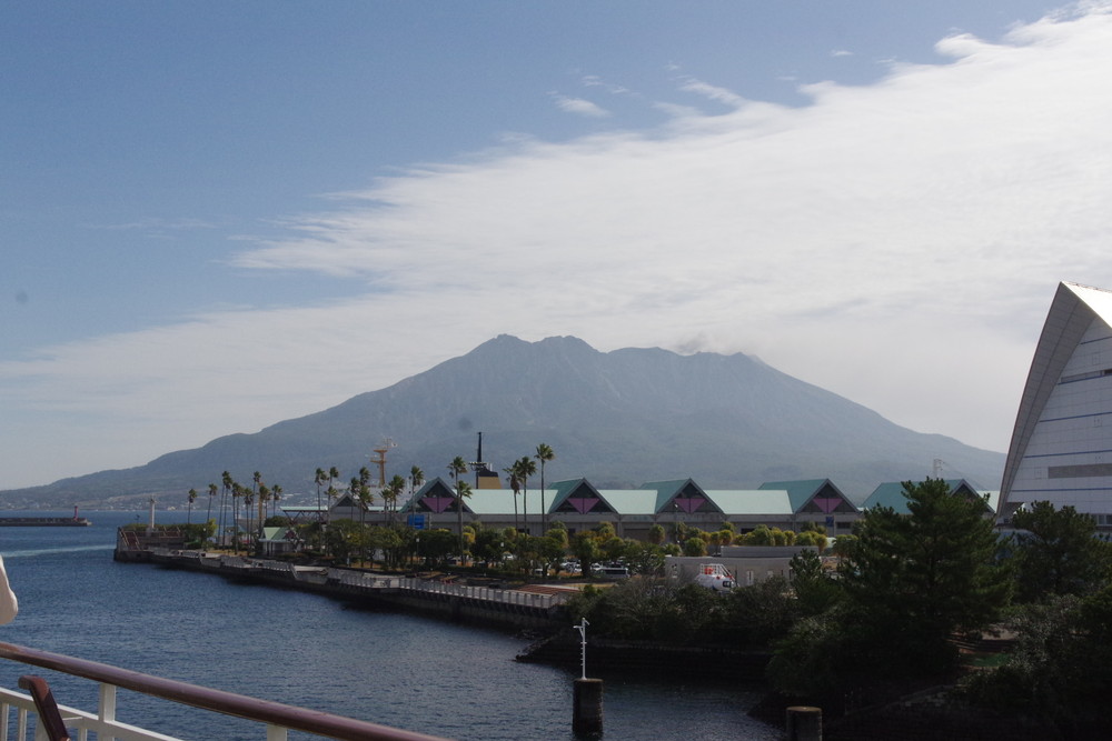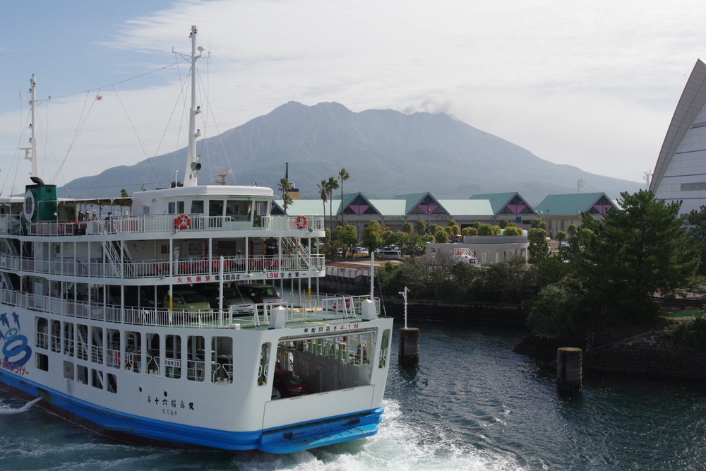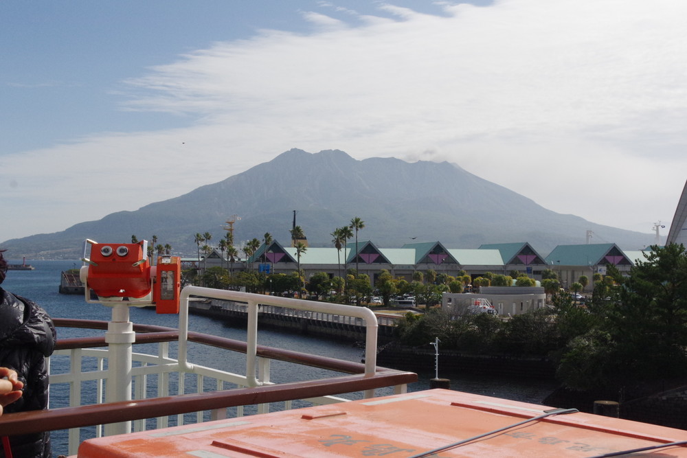 海岸沿いをスイスイ走って鹿児島港についたらフェリーの中に誘導され、停車後デッキに上がって数枚写真をとっていたらもう出航でした。良いタイミングでした。