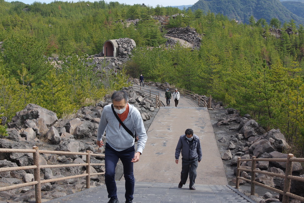 桜島上陸後長渕剛が野外コンサートで7万人集めたという桜なんちゃら公園の叫びの肖像で写真撮って、有村溶岩展望所へ。