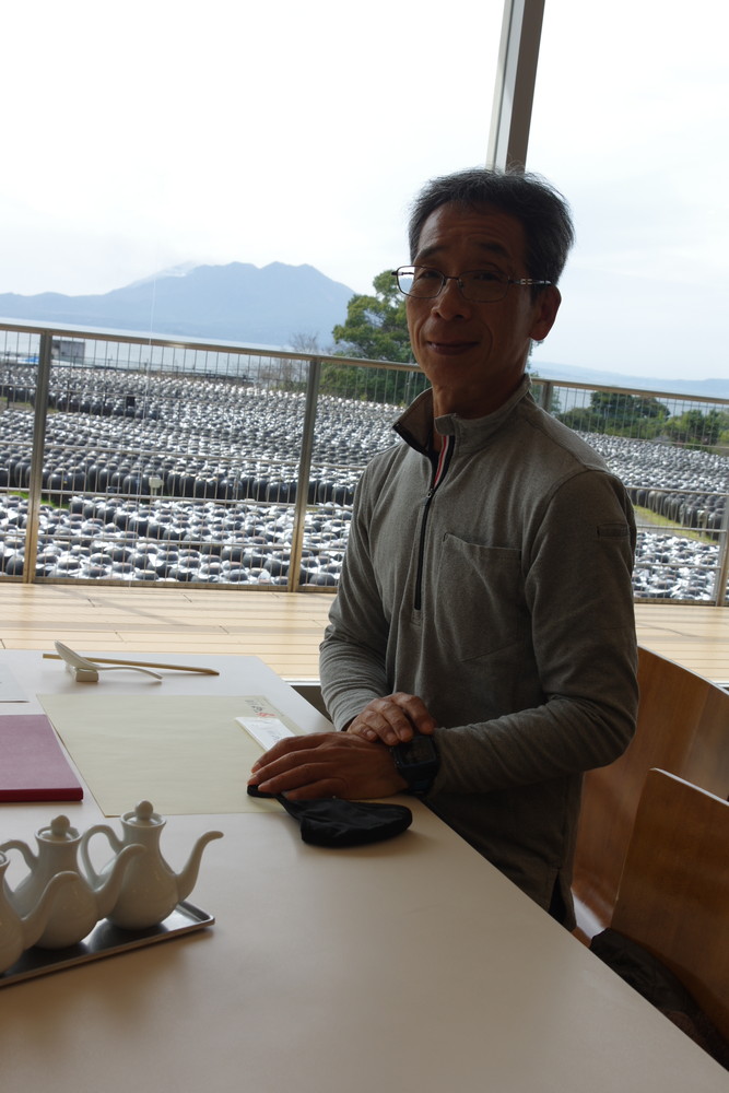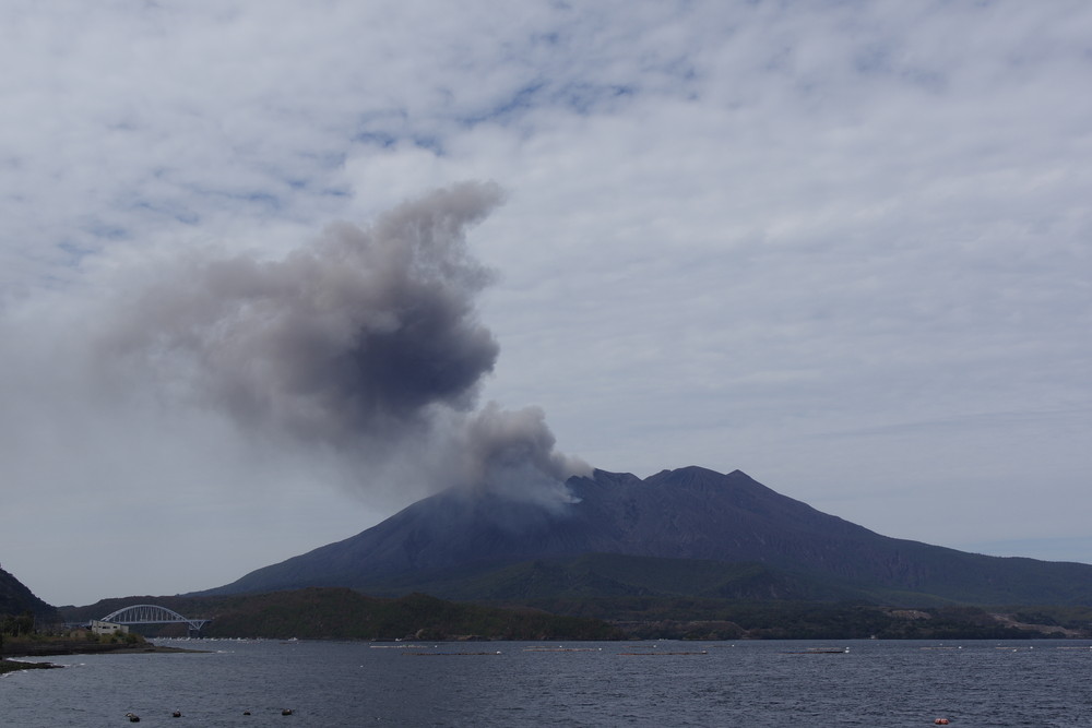 途中で桜島の噴火(というほどでもなく噴煙がちょっと大きめに上がっただけ)を道の駅によって撮影したりしたので10分ほど遅れました。