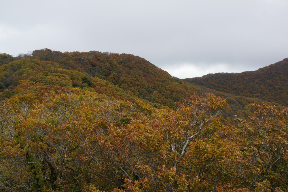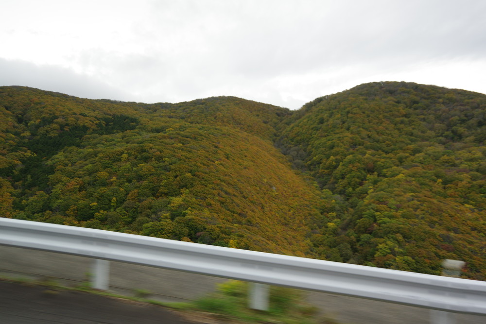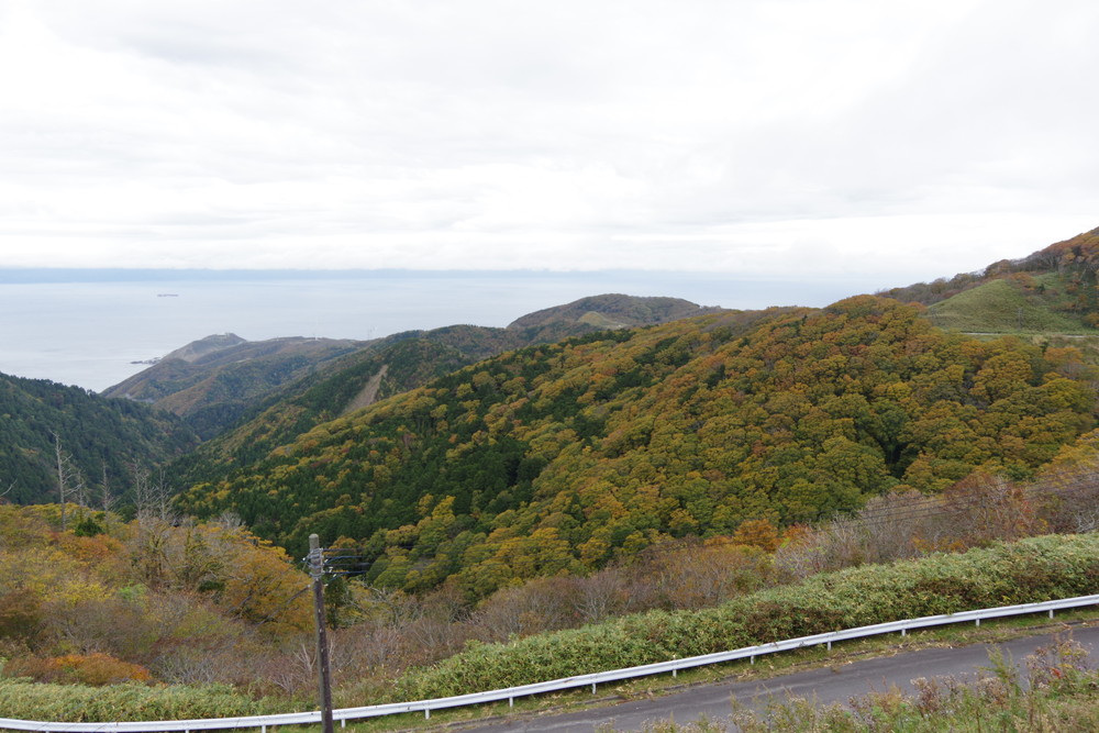 で、その後は竜飛岬に向かいました。曇り空でのドライブで紅葉した山を見るにつれ「ああ、陽が射して居たらなぁ」