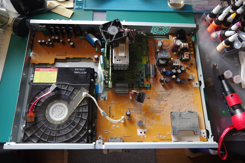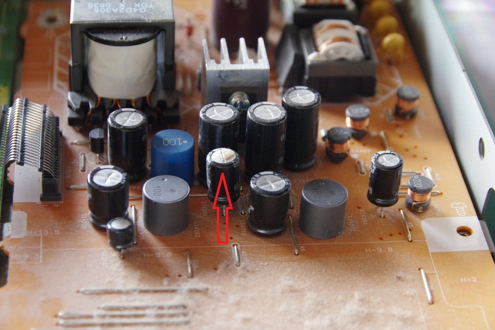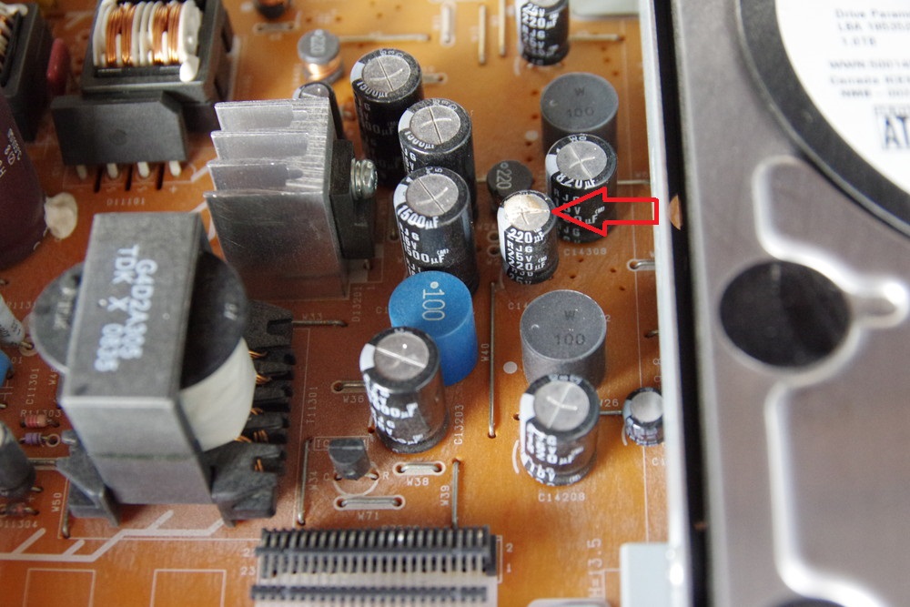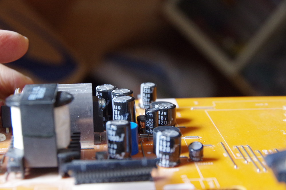 開封時に電解コンデンサが1個膨らんでいるのでそれが原因なのか?