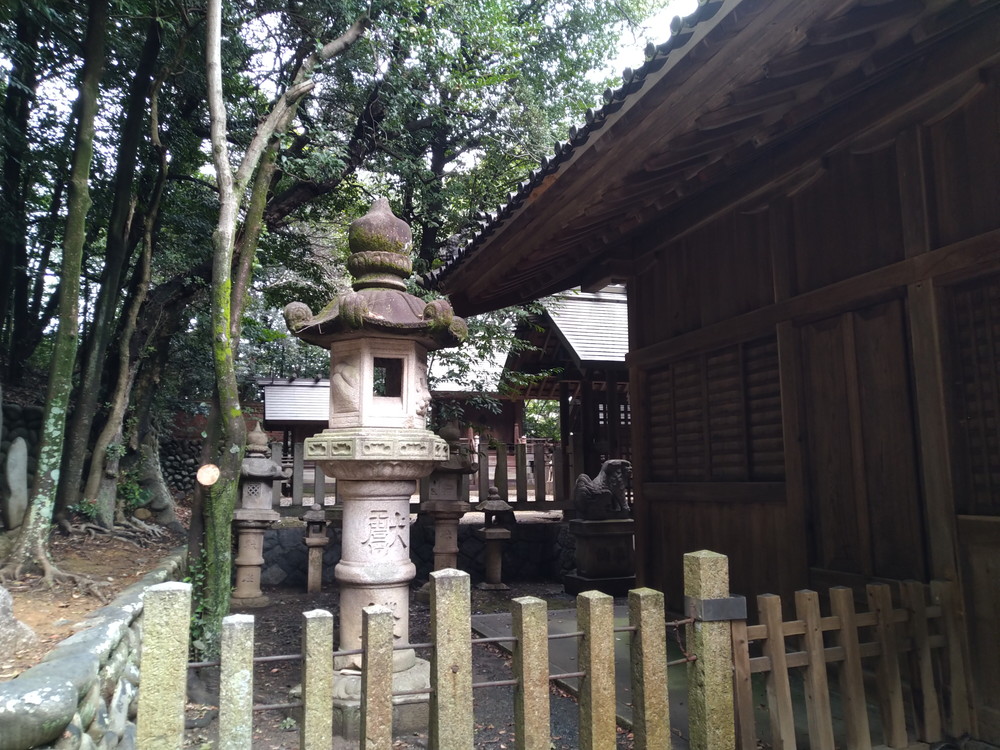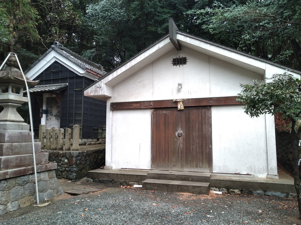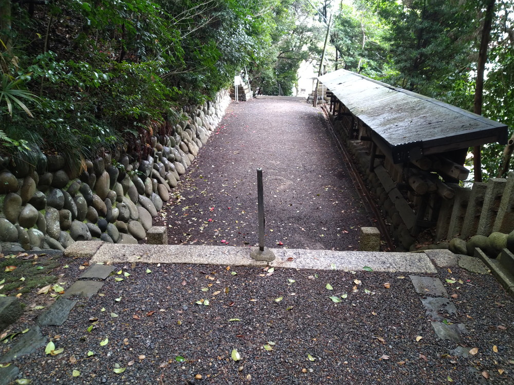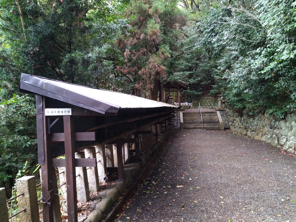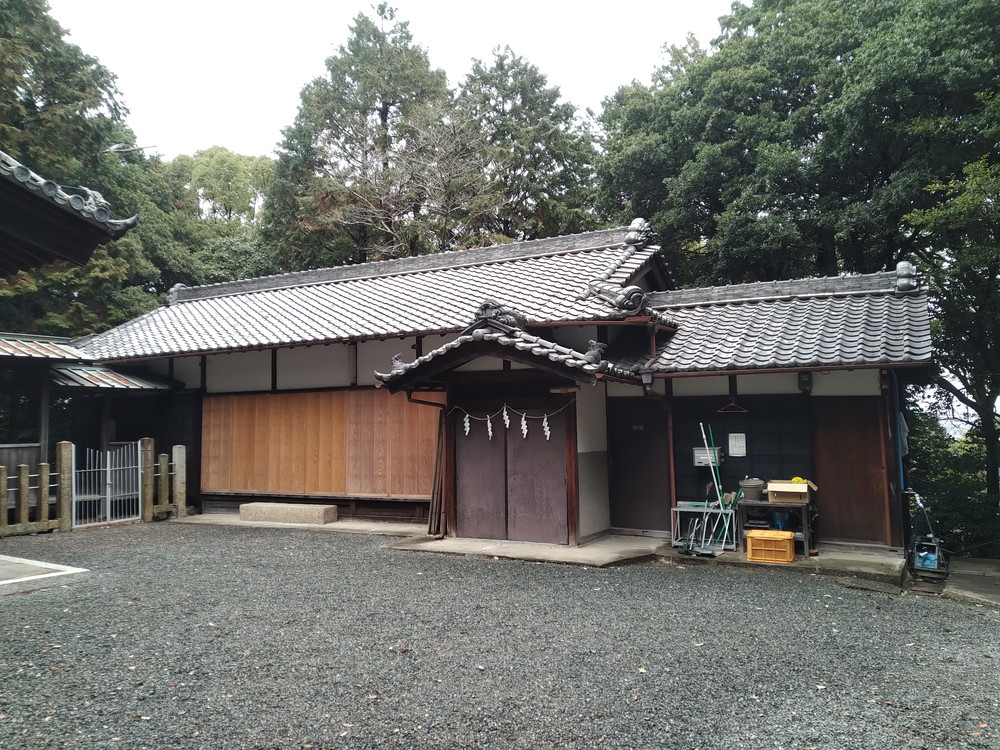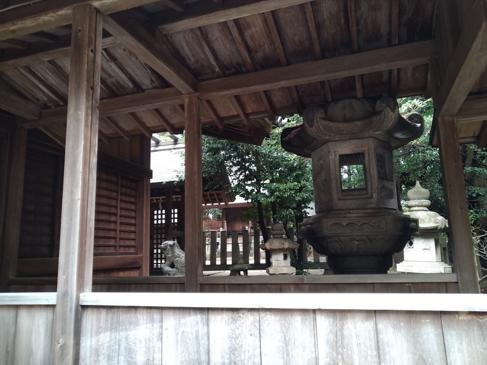 渡り廊下側から覗いたら本殿の神明造りがちょっと見えた