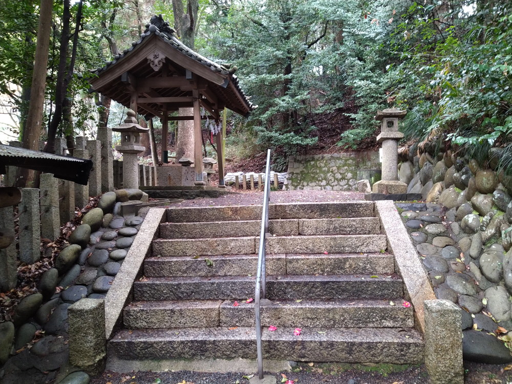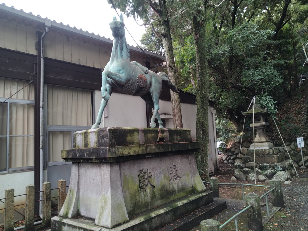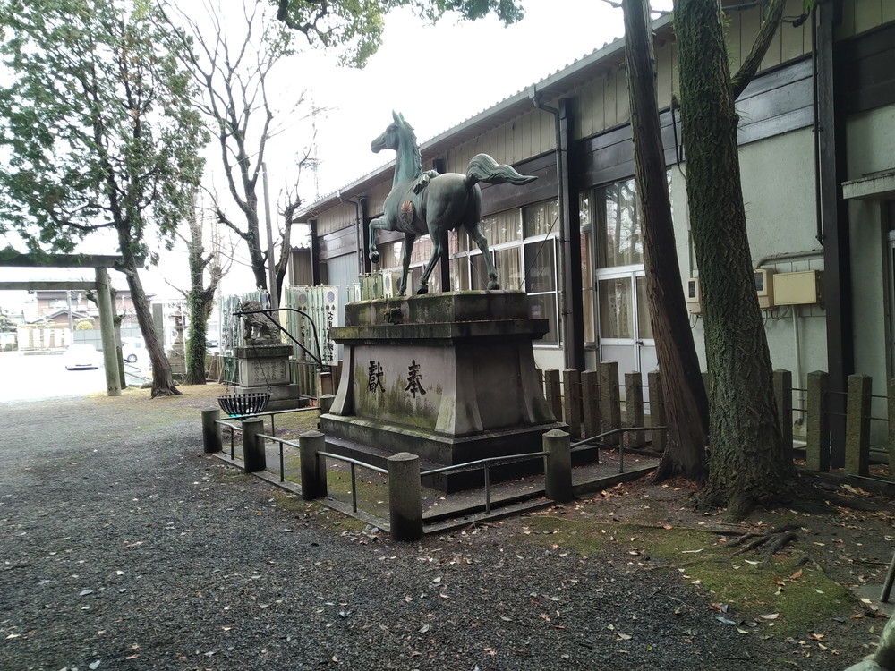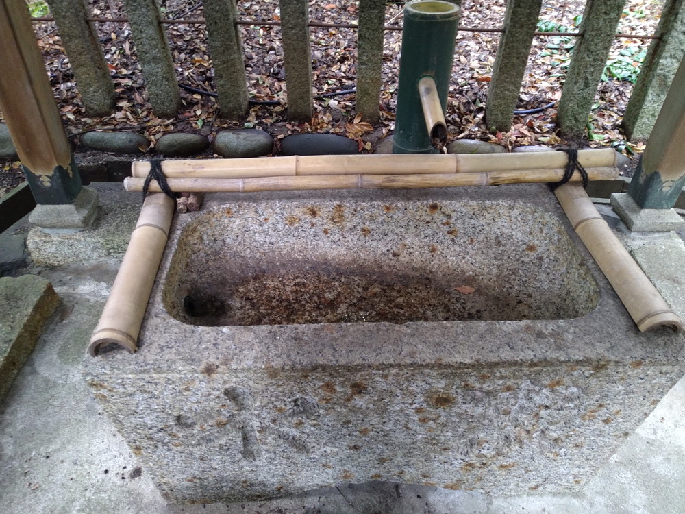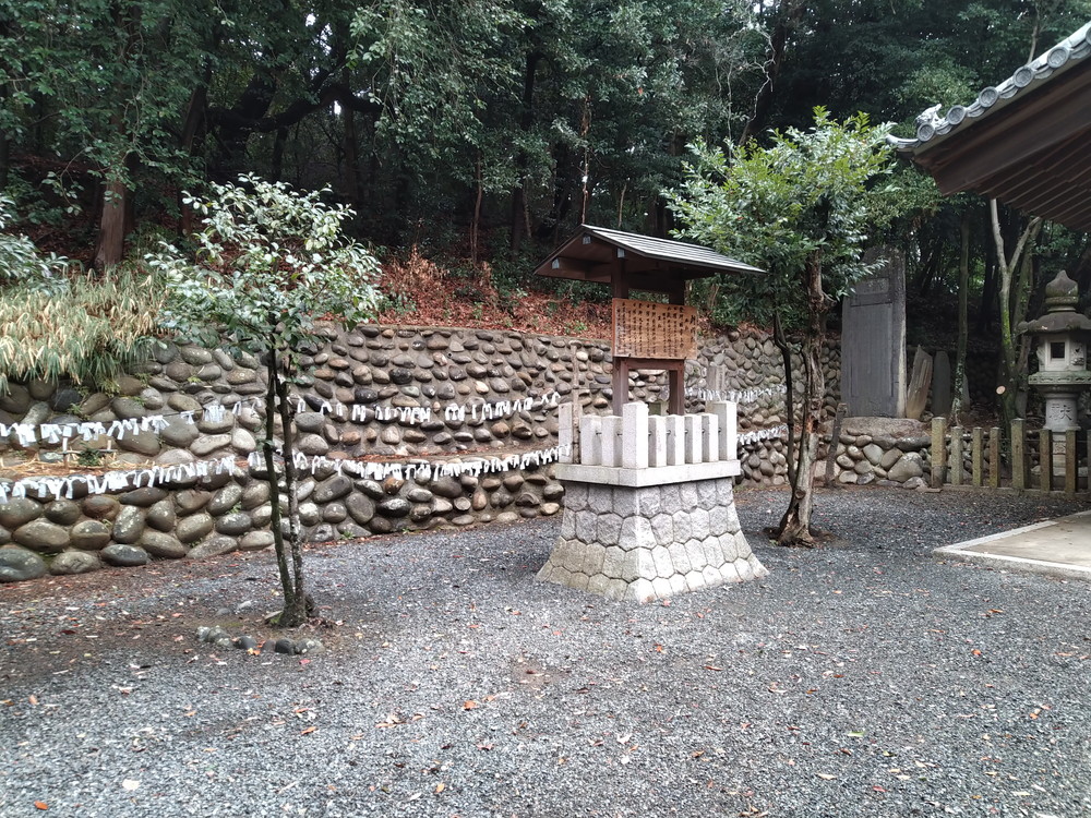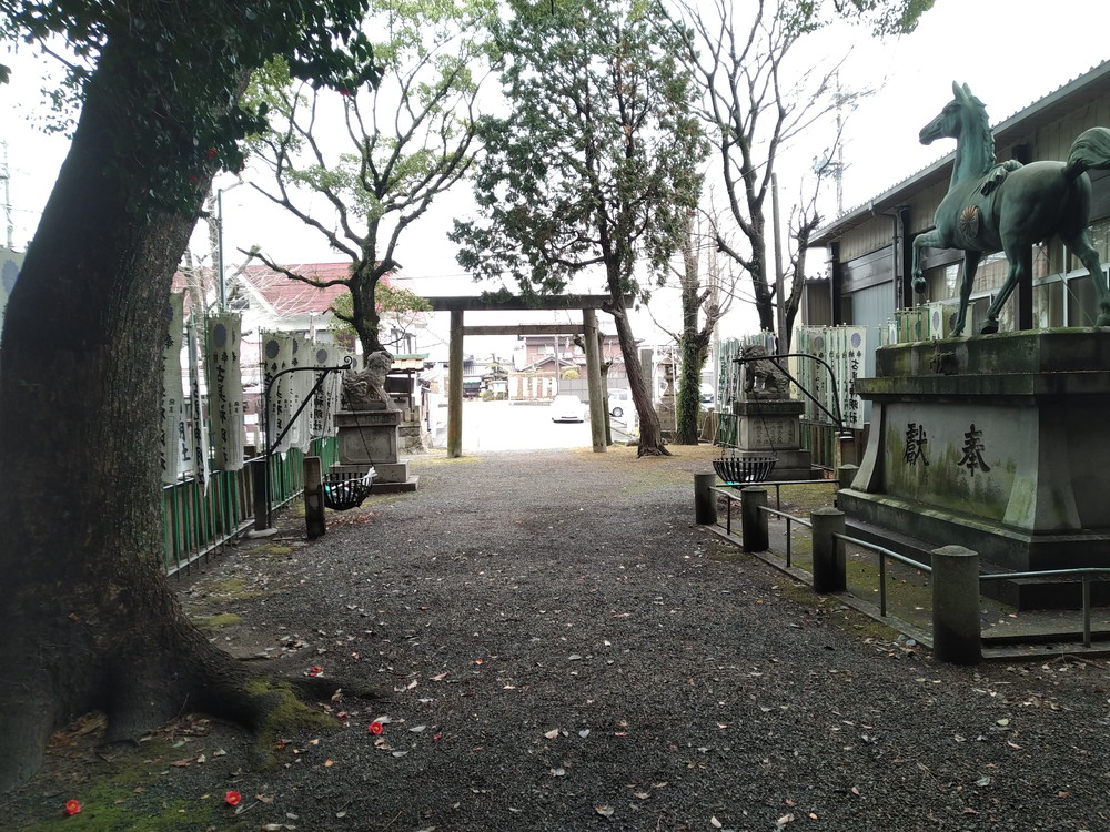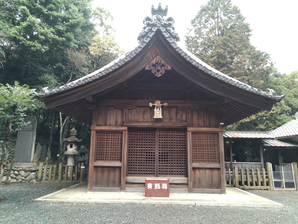 渡り廊下側から覗いたら本殿の神明造りがちょっと見えた