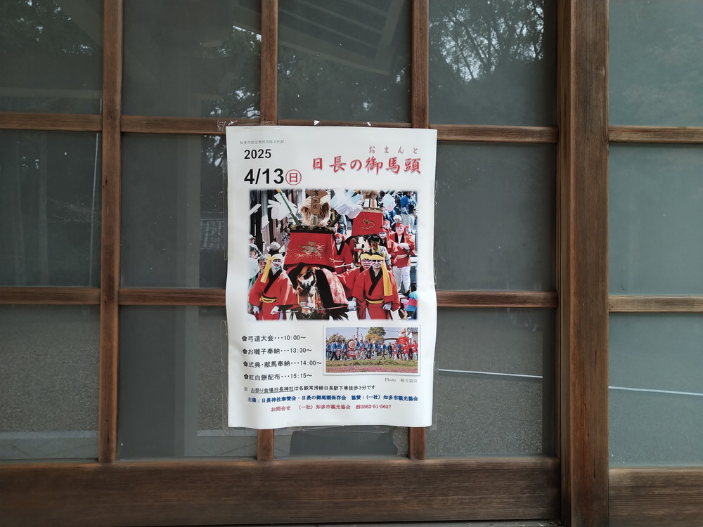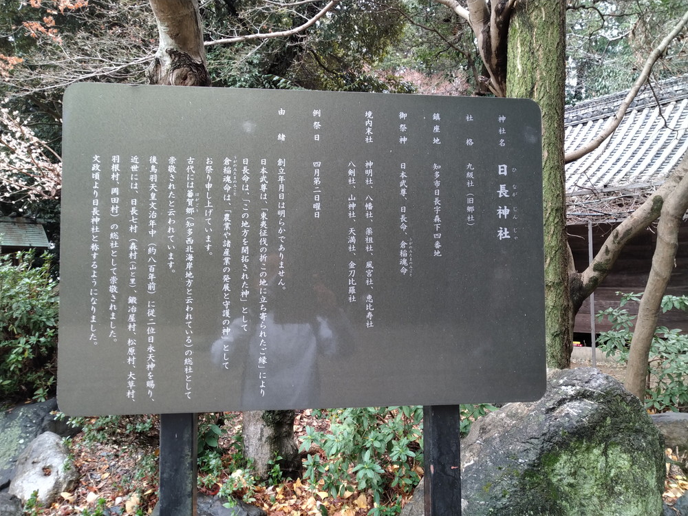 御祭神は日長命(ひながのみこと)で、尾張地方を開拓した尾張氏が祀っていた神の一柱とされています。また、熱田神宮に祀られている宮簀媛命の兄にあたる方ともいわれているとのこと