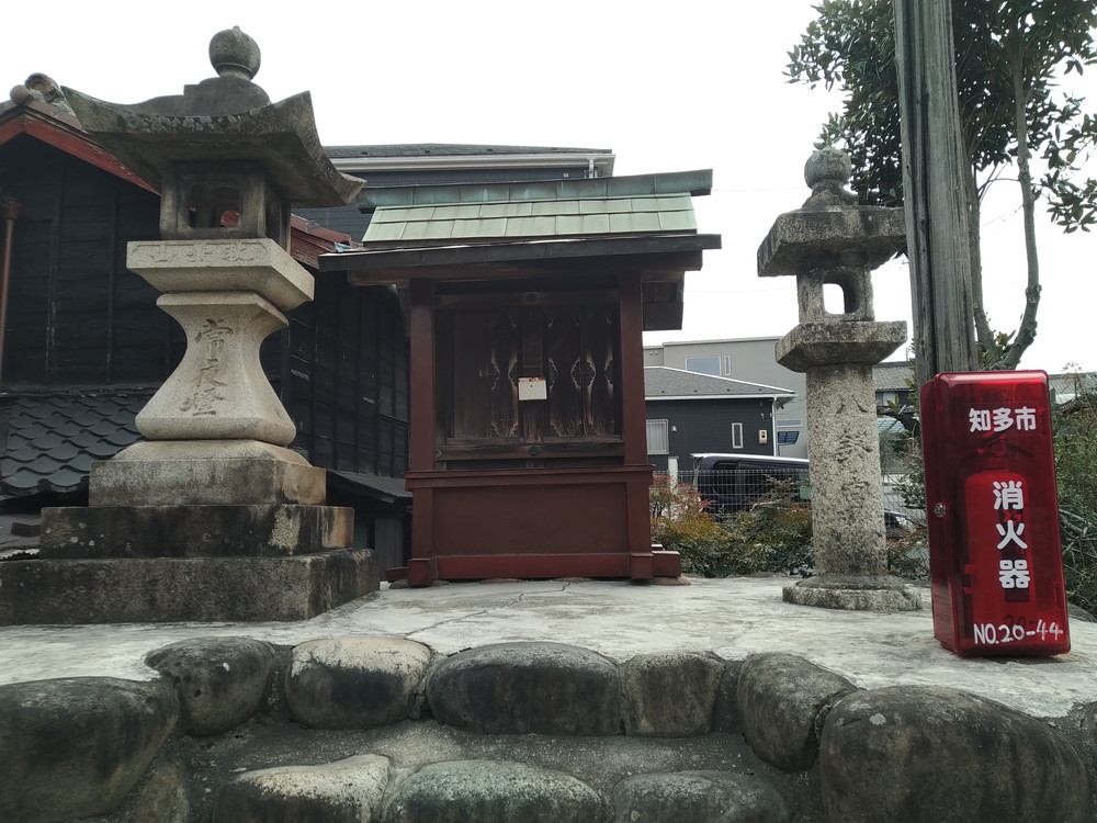 福祉会館への入り口側には石段を数段登ったところに門があり、奥に祠がありました