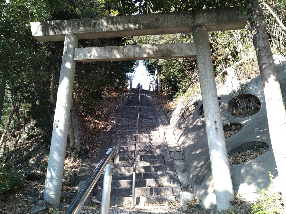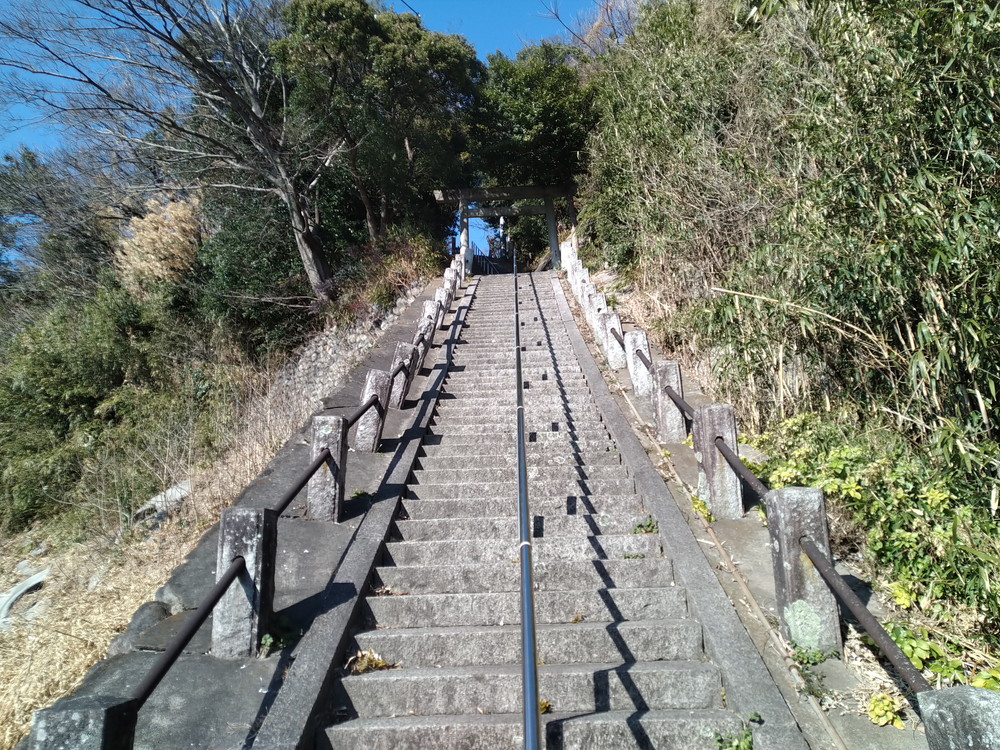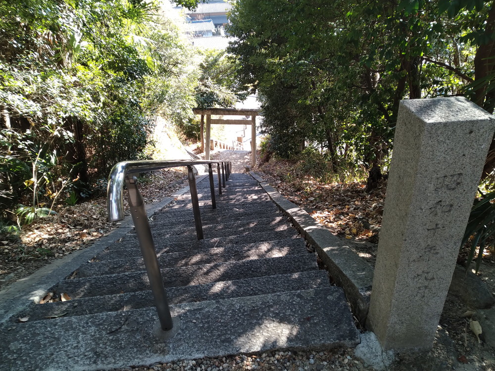一の鳥居です。ステンレスの手摺・・・りっぱです