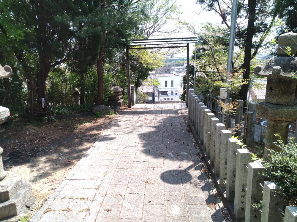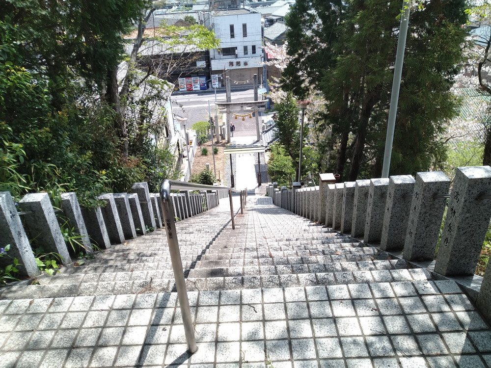 りっぱな鳥居と長い階段が見えます