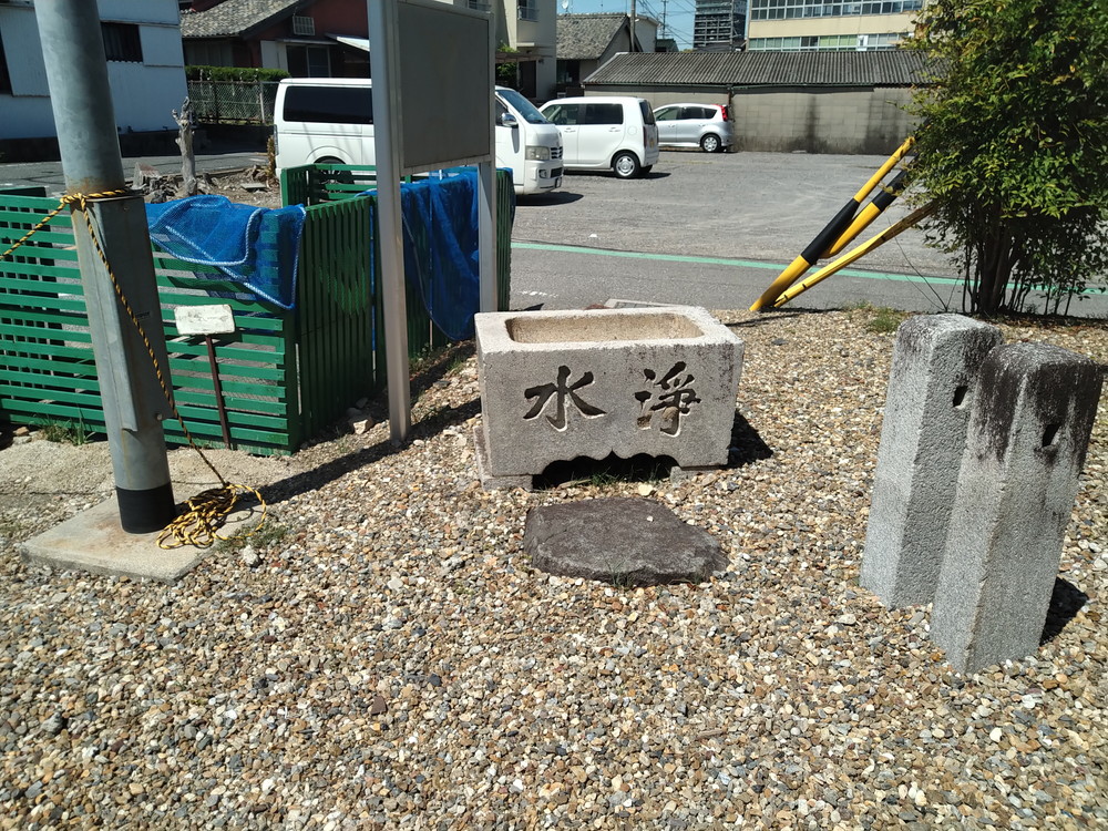 燈籠2基 周囲に樹木 手水場 旗立てようの石柱と全てそろっていました