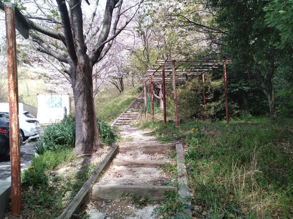 保育園とコミュニティセンター駐車場をかすめて登り始めます