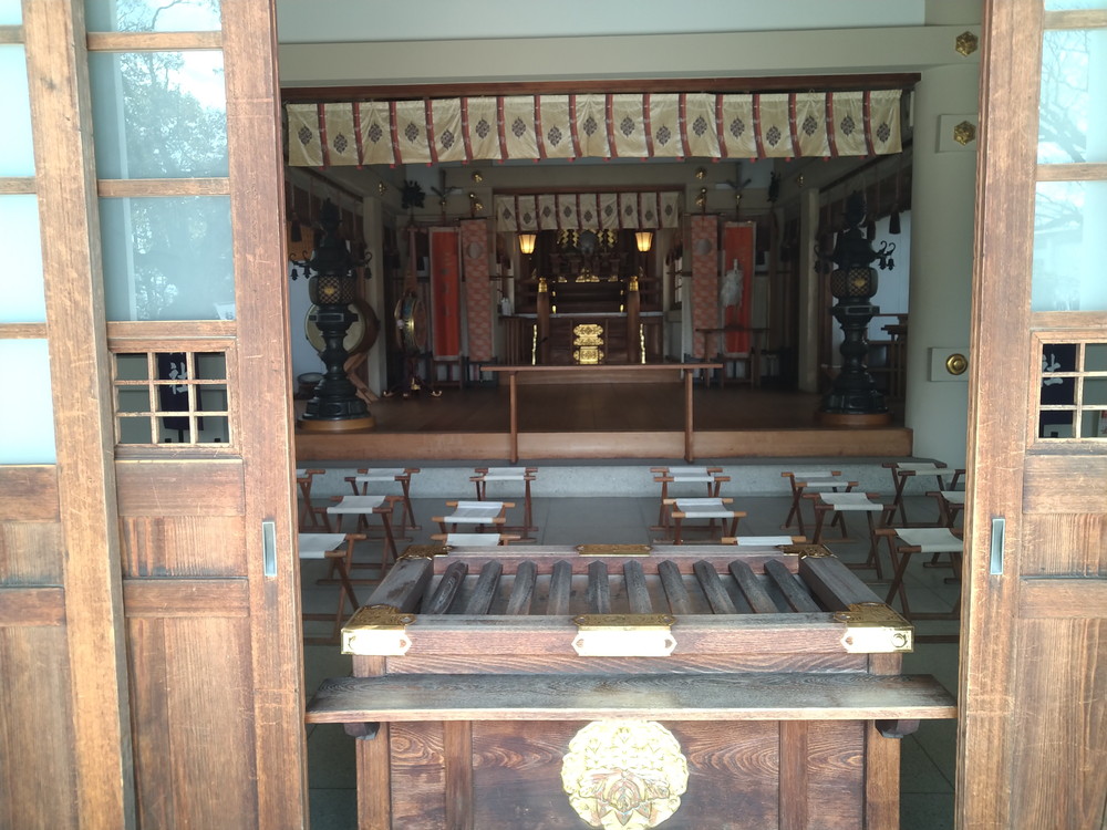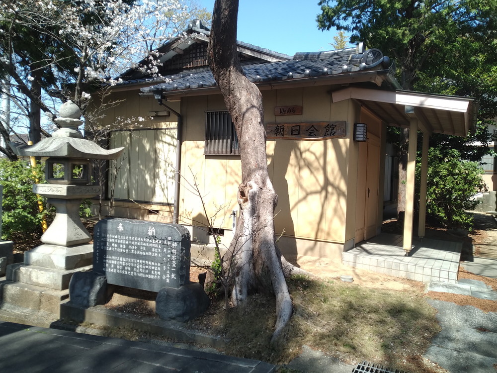 西側の鳥居をくぐると朝日会館というのがありました。参集所かな?
