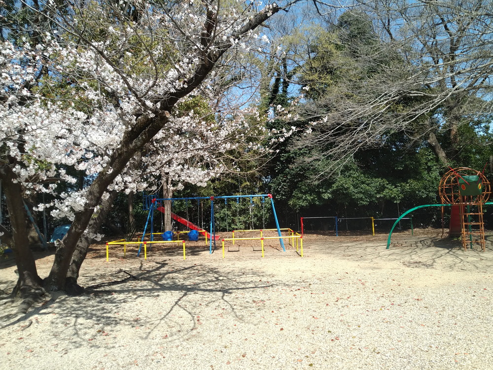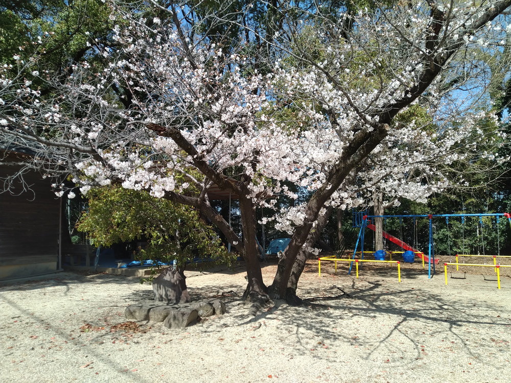 三峯神社の社殿の横にはちょっとした遊具もあり、桜もあり