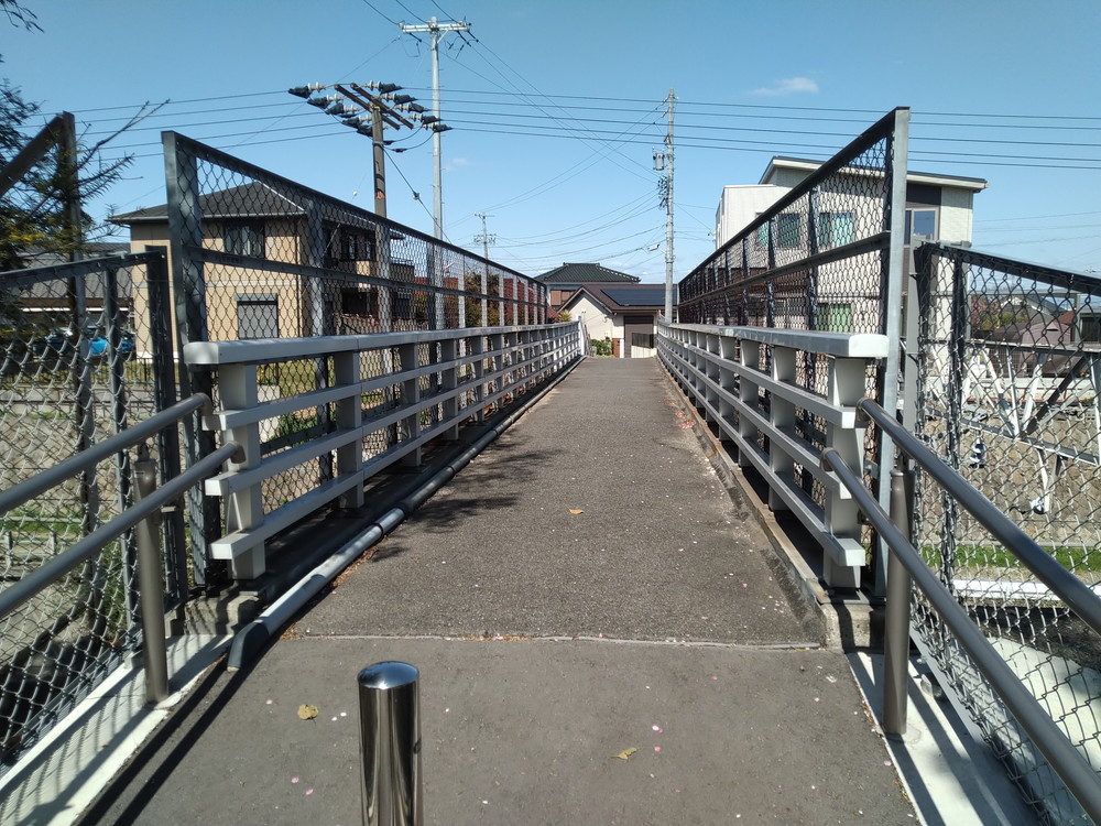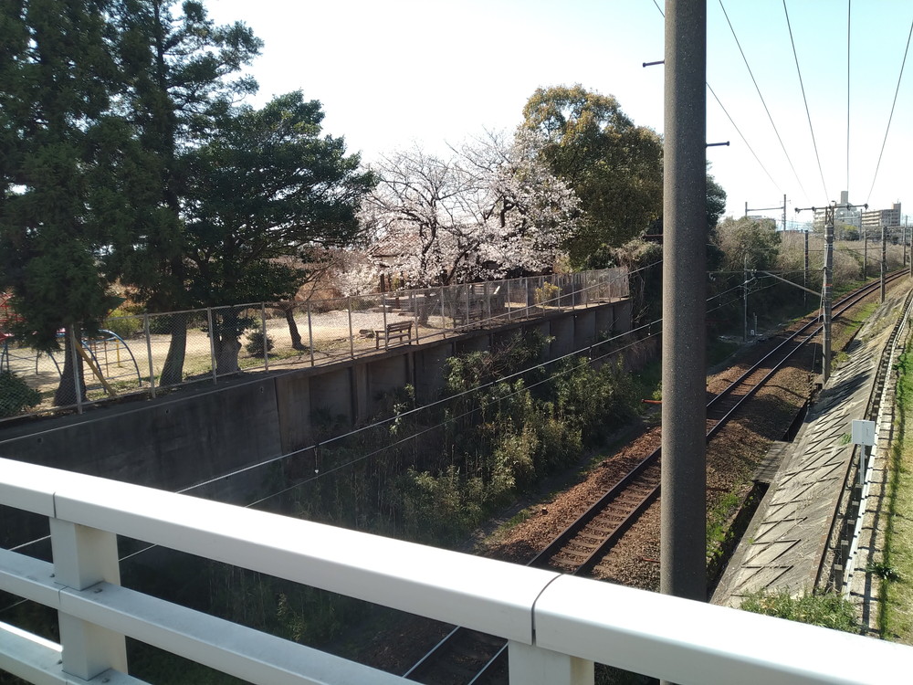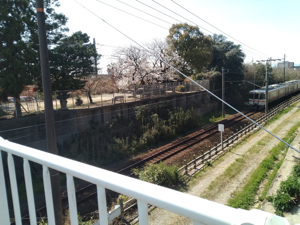 線路をどこで渡るんだろうか?とおもっていたら陸橋が見えた