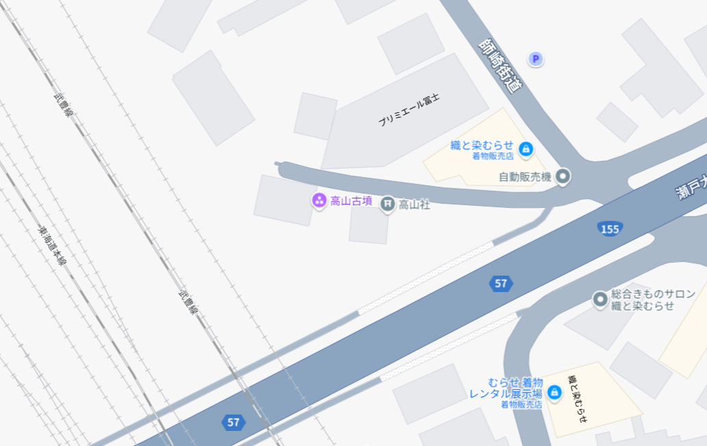 155号線がJR武豊線、東海道本線を越える北東角のたもとにあります