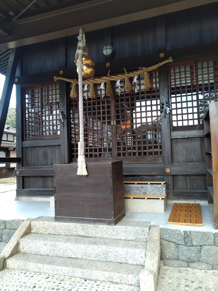 本殿木造美しい、しめ縄も立派、鈴がピカピカ