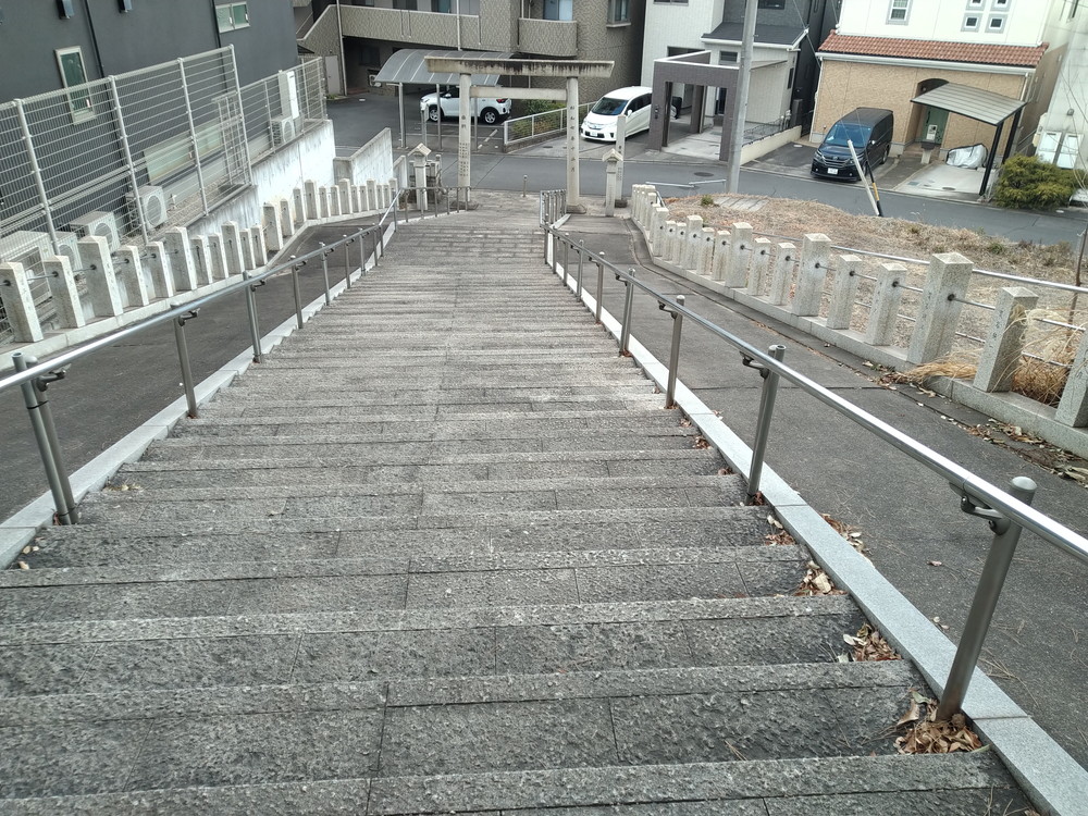 二の鳥居から一の鳥居までの階段は急こう配ですからお気を付けください
