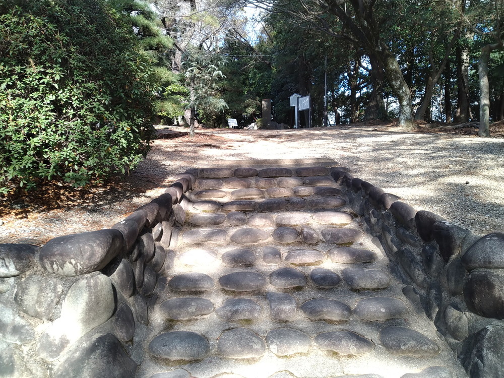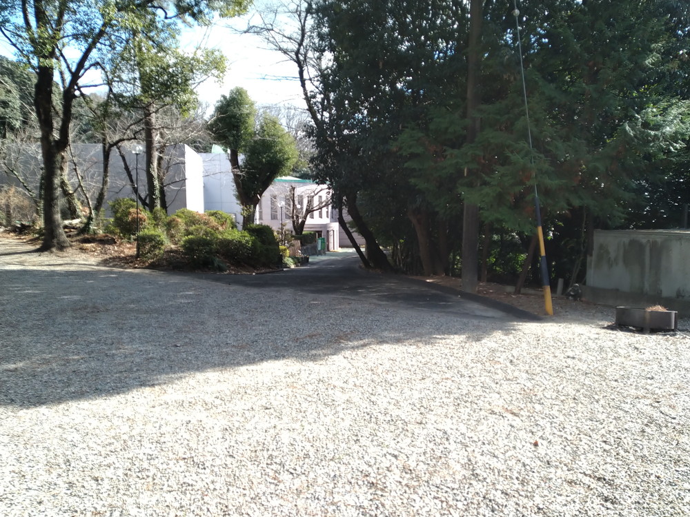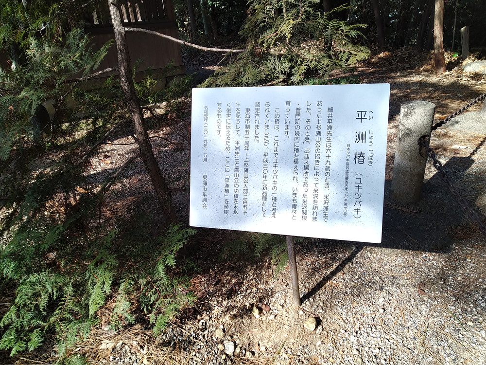平洲記念館へは境内から舗装路でつながっています