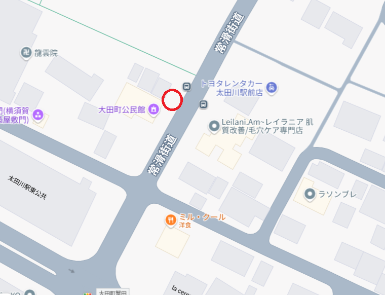 大田公民館の北にある黒口組の山車蔵の東にあります