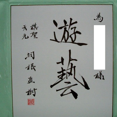 棋聖と天元の2大タイトルホルダー 羽根直樹さんが 書いてくださった色紙です。 我が家の家宝です。 額縁作って飾らねば。