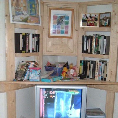 テレビのサイズはビデオテープのサイズに合わせて作ったので 収まりはよいと思っているのですが・・・