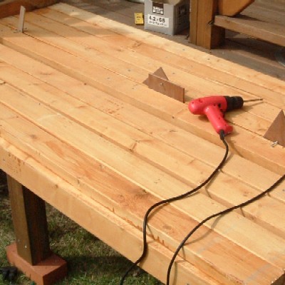 5mm厚の合板を3ケ所にかませて デッキを張っていきます。