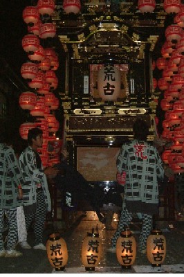 提灯をまとった、山車の前に 荒古組の手持ち提灯