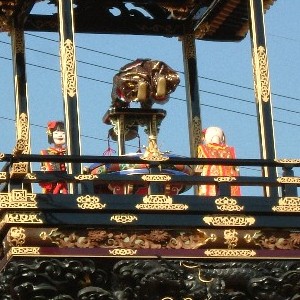 試楽(しんがく) 太田川駅で今から逆立ちしようとしている荒古組のからくり人形