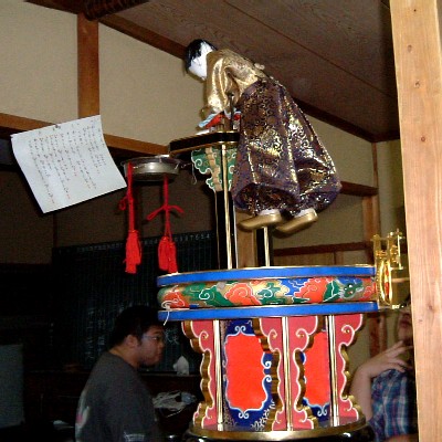 人形の左足と右足の間にあった指金が抜かれ、この時点では左腕に指金が入っている。