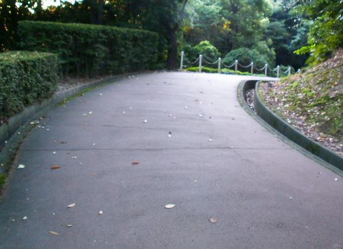 | 公園の周回コースへ向かう上り坂 | 小生の周回コーススタート地点 |