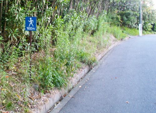 | うわぁまたピンボケ。かるい上りです。980m地点 | ここが1km地点。けっこうアップダウンがきつい1kmですよね。 |