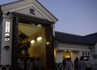 試楽・本楽ともに好天。 横須賀まつりも両日とも好天で 過去にほとんど記憶にないほどのW-W好天だ。 試楽に初めて提灯まつりをしたのであった。 ご覧ください。 2015年大田まつり