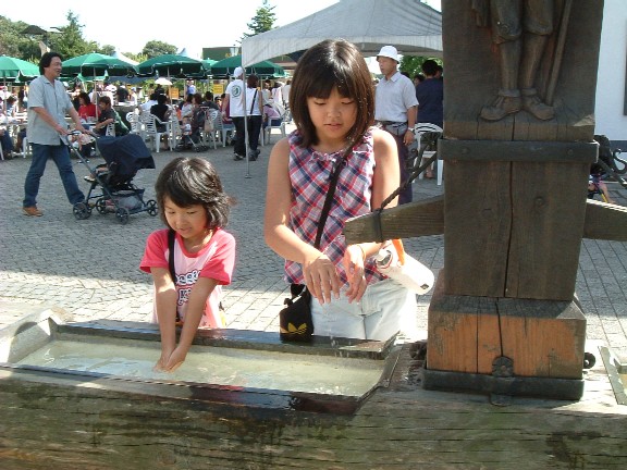 「餌と間違えられて、手まで 舐められちまったぜ!」 しっかり洗う 二人組み。