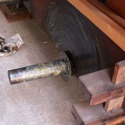 山車の車軸にもグリスを塗っております。