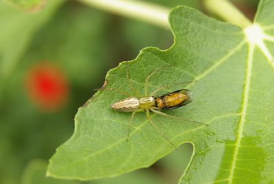 イチジクの葉でクモが虫を捕獲しておりましたよ。