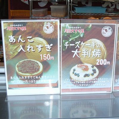 伊勢湾岸道路の刈谷SAの大判焼きのメニューの一部です。 面白い兄ちゃんが大判焼き焼いていました。 219.99.0.67 (05/05/25   142)