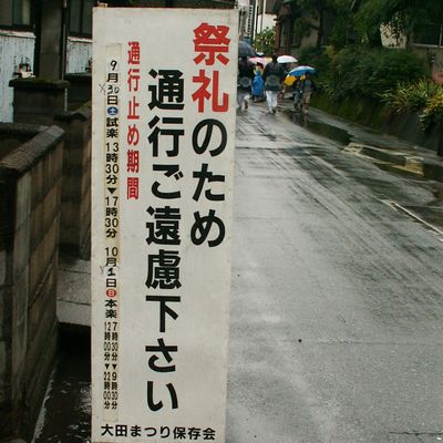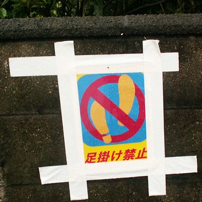 せまくてしかも曲がっている道にあるブロック塀に貼られていました