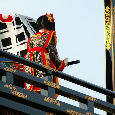 駅のひさしにも祭り提灯が取り付いていて、雰囲気を盛り上げてくれます
