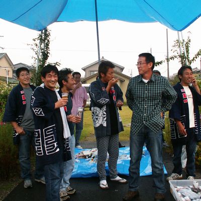 蟹田のさきに設営された黒口中老&中老OBの詰め所 おビールいただきました