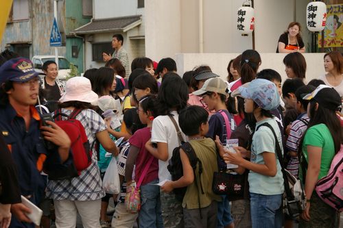 大ヒット&ロングセラー企画 スタンプラリー。子供の人だかり
