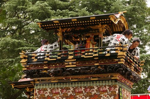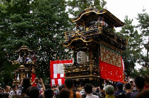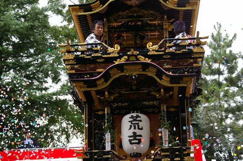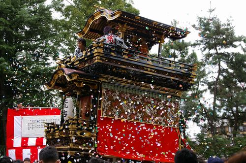紙ふぶきの中の山車