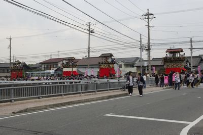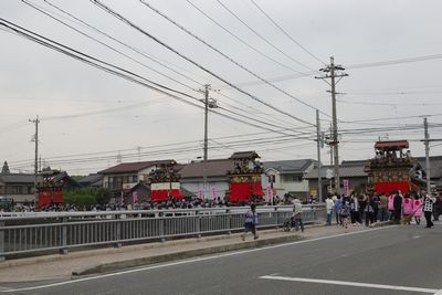 荒古組どんでん終了、4台同じ方向を向いたところを 橋のこちら側から撮影