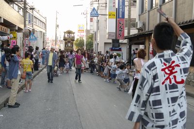 大田交番に向けて、子供たちに山車を引いてもらいます。