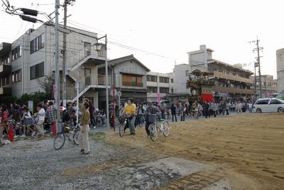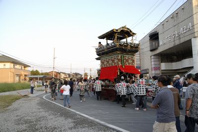 荒古の山車がホワイトプラザ前のクランクを通過中