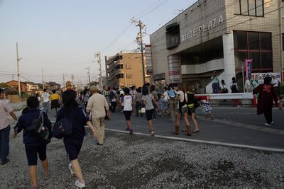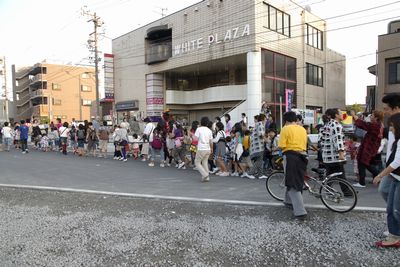 ホワイトプラザの前を子供たちの持つ綱が通過する。